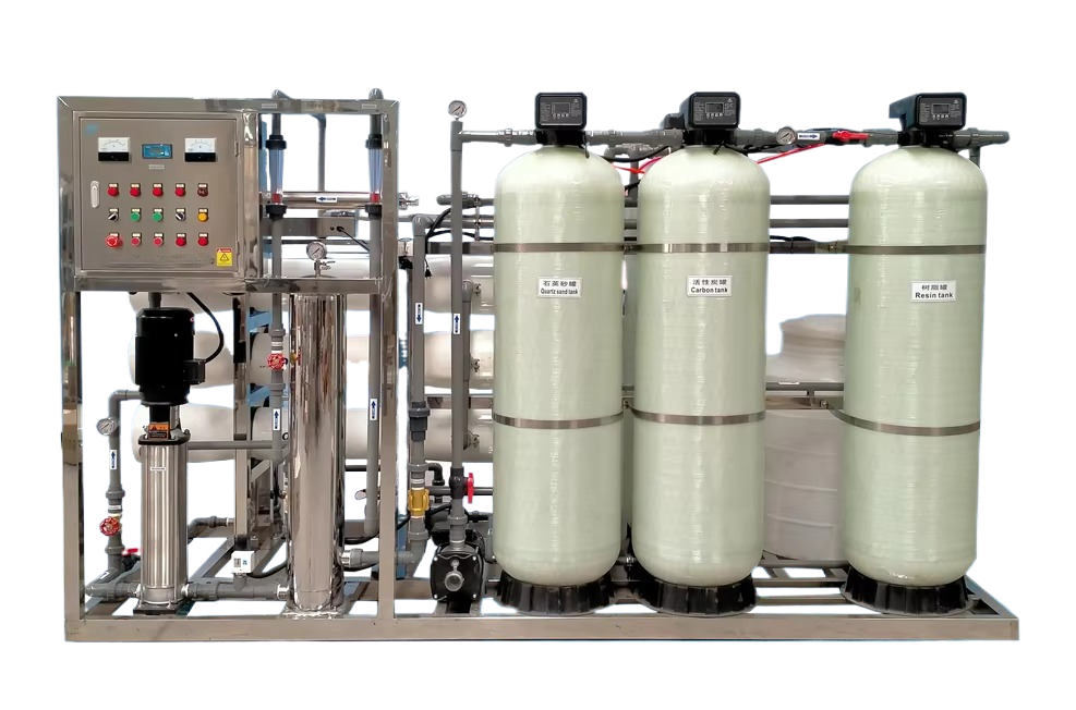 Water Source---Water Source Tank(customer to get ready)---Pressure Pump---Manganic Sand Filter—Active Carbon Filter—Scale Inhibitor Dosing System ---1st Step Security Filter---2nd Step Security Filter ----3rd Step Security Filter—High Pressure Pump---RO Membrane---Pure Water Tank(customer to get ready)---Transfer Pump(customer to get ready)-----UV-—Precise Filter---Final Water